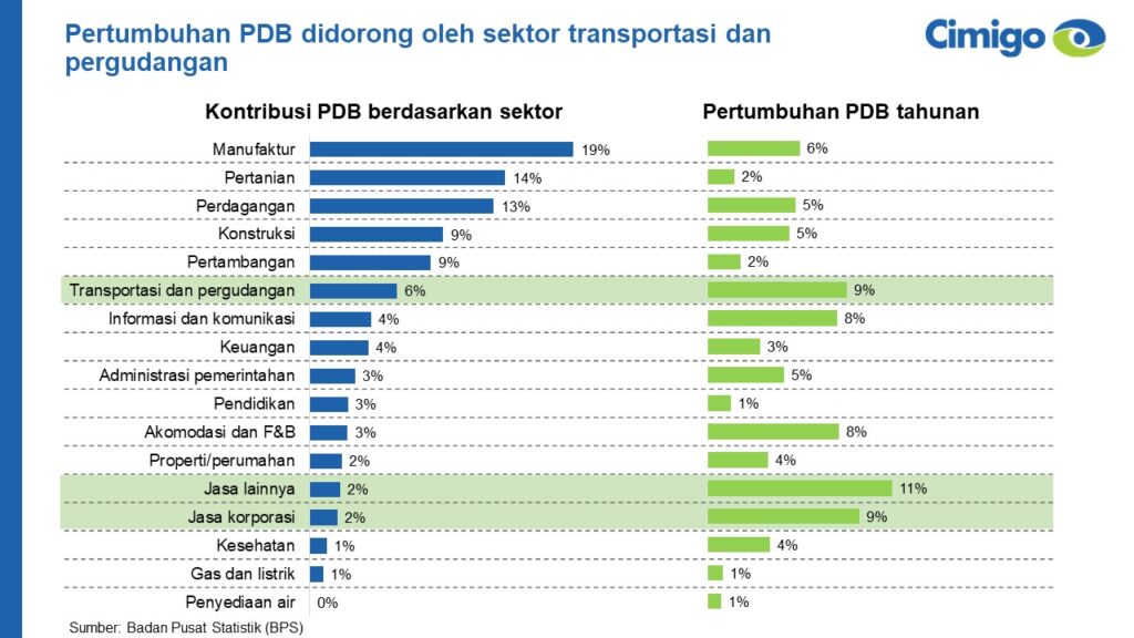 Pertumbuhan tertinggi pada sektor transportasi dan pergudangan